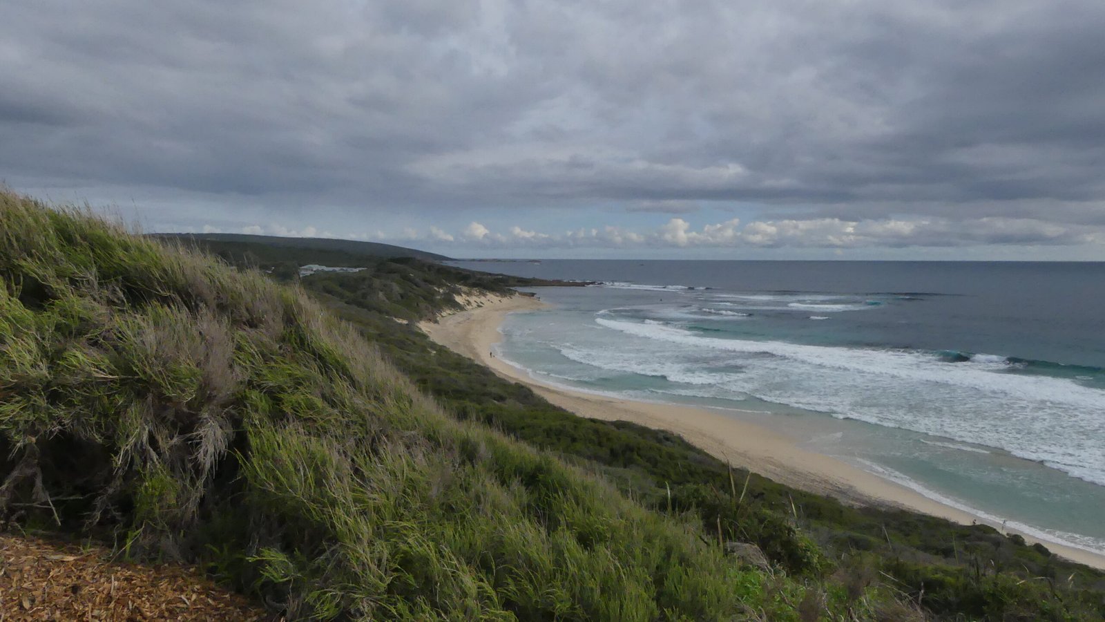 This walk we have done twice, first clockwise yesterday and then the other way this afternoon climbing from the houses to the end of the road and car park with a new lookout and then a descent to “The Shallows” which is the northern end of Yallingup Beach. As yesterday the surfers were out but the breaks were not as forthcoming as the previous day.