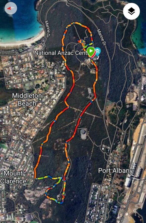 We parked at the Centre and walked a mixture of the trail around the twin summits of Mt Clarence and Mt Adeliade together with diverting to the lookouts and memorials along the way; our journey here is anti clockwise and came to 6.75km … and with Quendas hopping around everywhere …