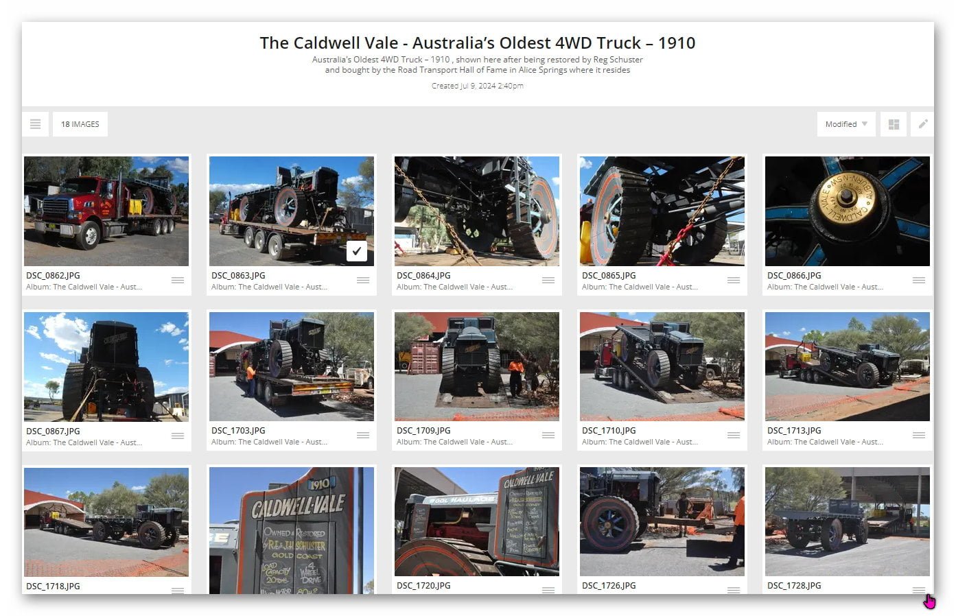 In February 2015 the Transport Hall of Fame acquired Australia’s oldest 4WD truck, the Caldwell-Vale built in Auburn (Sydney) in 1910.