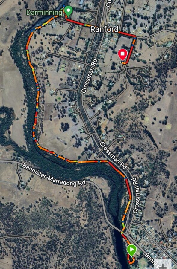The walking trail going downstream goes for around 3km to Ranford Pool, a popular local swimming hole, there is an option of returning via the rail trail, a paved path along the route of the old Pinjarra to Narrogin rail line. In our case we visited a local lady in Ranford to talk about the history of the Rodeo and got a car ride back to the caravan.