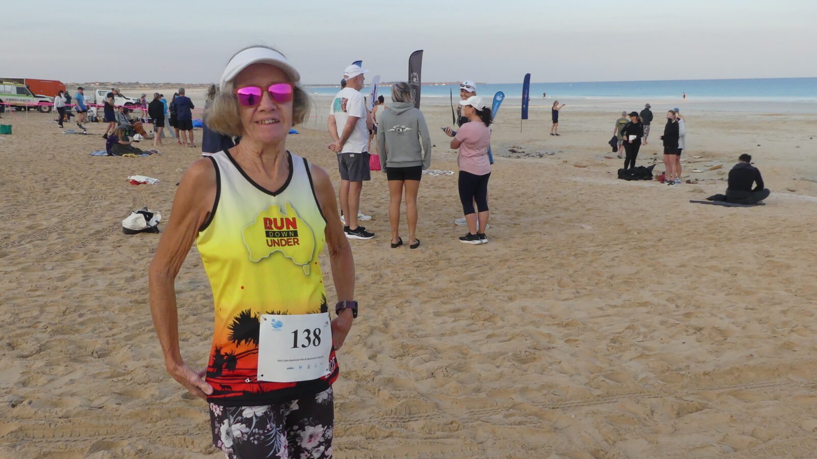 While staying at Waterbank, we took several trips into Broome and were going to leave after the Landcruiser repairs but came across the Broome Marathon event and Frances decided to enter the half marathon, run on Cable Beach on August 3rd, just 2 days before her 72nd Birthday.