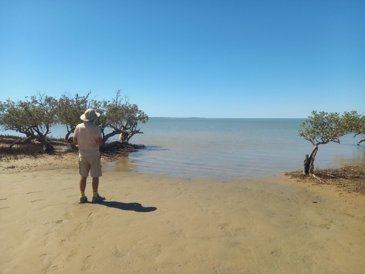 From the Station you can drive a 22km 4wd track to the shoreline of the Southern end of Exmouth Gulf where we were surprised to find a grey Nurse Shark grazing in the shallows: