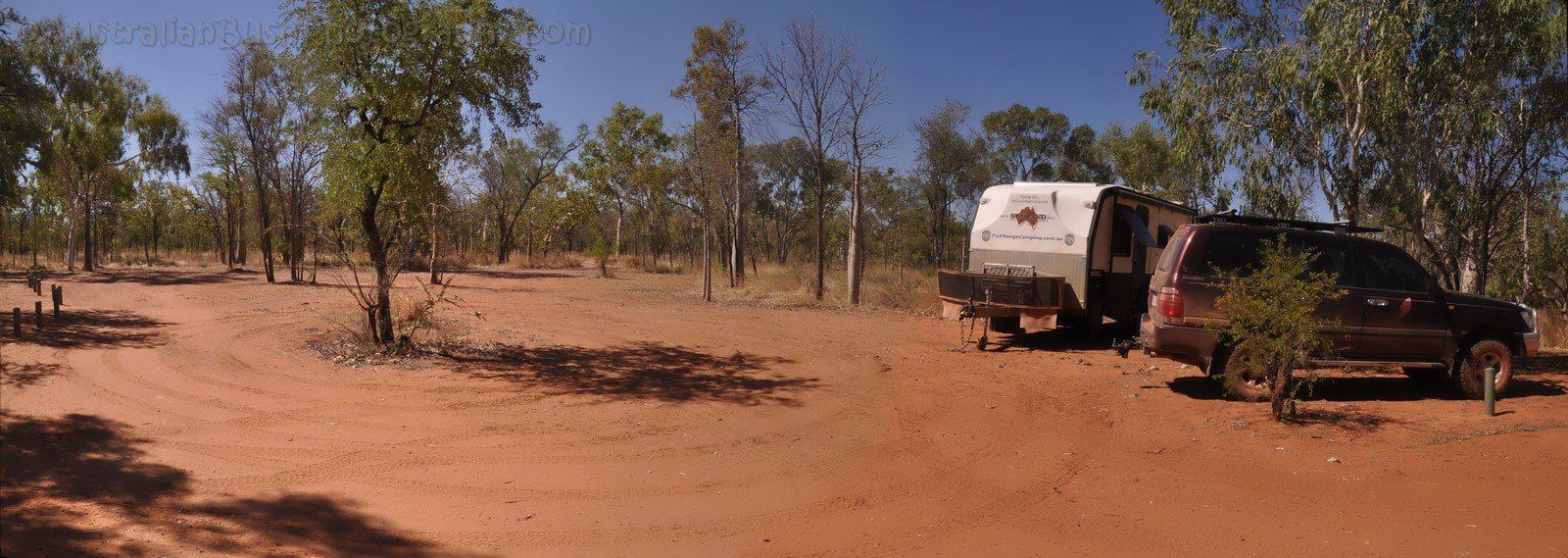 The Bullita Campground is located next to the East Baines River and on the old Bullita Stock Route which can be traversed by 4WD, river level permitting. We walked a couple of km of the route and back to camp; the river at this time of year forms the usual billabongs for this part of the country.
