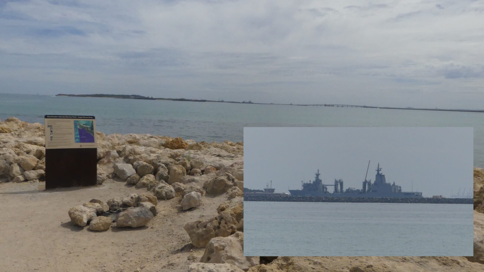 With a day free after our visit to old friends, we drove the short distance to Cape Peron and walked about 4km around the whole headland and beaches with the views to the town, the coast, and across to HMAS Stirling which occupies Garden Island and is WA’s primary Naval base and Australia’s major Submarine base.