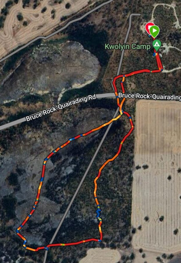 Across the main Bruce Rock to Quairading Road is Cathedral Rocks, accessed via a short walk trail along the track to Coarin Rock . A loop of about 3km takes you through the bush to the standing stones which give Cathedral Rocks its name and then continues around the main rock and over the top.