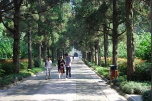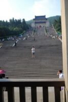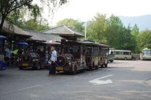 What a good idea, for 10 Yuan each we got to ride in a carriage behind a faux ‘Train’ all the way up and round to the mausoleum. Or so we thought, as we thought we’d got off at the right stop but found ourselves in a row of tourist shops which was interesting but not what we came for. Mind you we did stop for an ice cream. This is a very popular place to visit it was certainly filled with so many sightseers, and we even saw a few foreigners too! I was impressed with a local who came to chat asking Renee where we came from in very good English, but one of the lens’ to his glasses was held on with sticky tape! And I found it hazardous too leaving Renee outside ‘waiting’ every time I’d head for the loo, she’d always disappeared by the time I’d come out! (Although these events were probably after we’d visited the Mausoleum.)