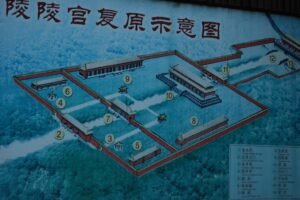 Here was another wide and long avenue to walk up and we found ourselves climbing more steps. But we’d done the mausoleum yesterday so this was a breeze comparatively. Still, it had a nice view from the top too. Inside the building was empty but around the walls large plaques told the story and timeline of the Ming Dynasty. This was very interesting and I tried to take as many legible photos as I could.