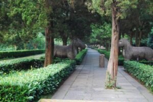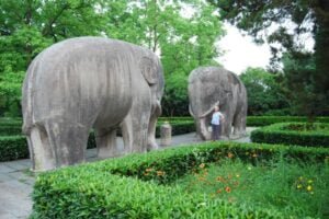 Lovely avenues took you between huge statues of camels, elephants and all sorts of animals made out of stone. However when we finally came to the Ming Temple itself it was in its own fenced off area and shut, so we were too late. I’d like to point out here that there were many signs on the pathways we travelled down directing us to the Ming Temple but it was our experience they were all wrong, really really fundamentally incorrect!!