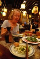 And trying to eat a small whole leg of chicken with chop sticks, well interesting but perhaps that was another meal elsewhere! Although I should add that after eating a large round thing which had the appearance of being fried with sesame seeds all over and maybe sweet, Renee said she was beginning to feel as though she was having an allergic reaction. Luckily she had antihistamines in her bag. But this ball did appear to enclose what may have been fish roe, who knows we don’t! I felt very sorry to be leaving so much food behind; I didn’t want to make them think we didn’t like their food. But without a fridge in the hotel room it was impossible to take it back in a doggy bag for tomorrow.