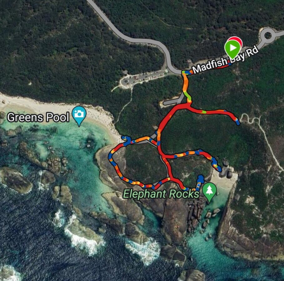 Leaving Denmark, and heading for Walople, only a 70km journey, we diverted via the coast again to take the short walks to Elephant Rocks and Greens Pool, two adjacent well-visited locations with recently enlarged car parking and new access trails.