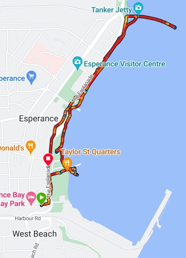 So our week at Esperance starts; after our Saturday afternoon arrival we caught upon washing Sunday morning and took an afternoon walk to the Tanker Jetty and back along the Esplanade, a total of around 6km.