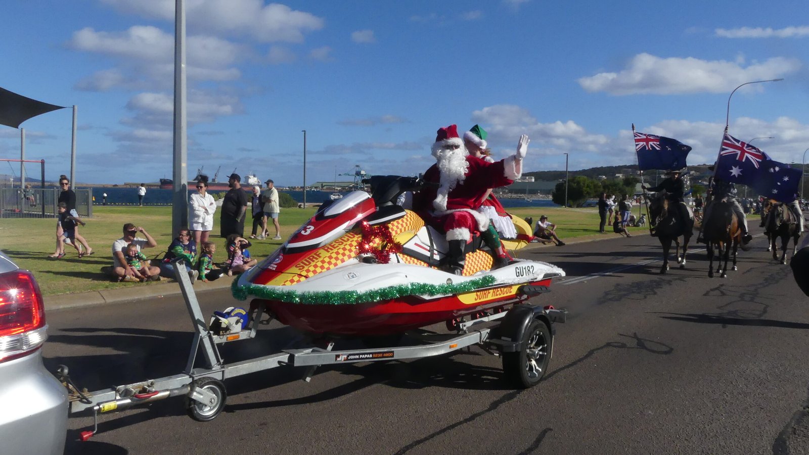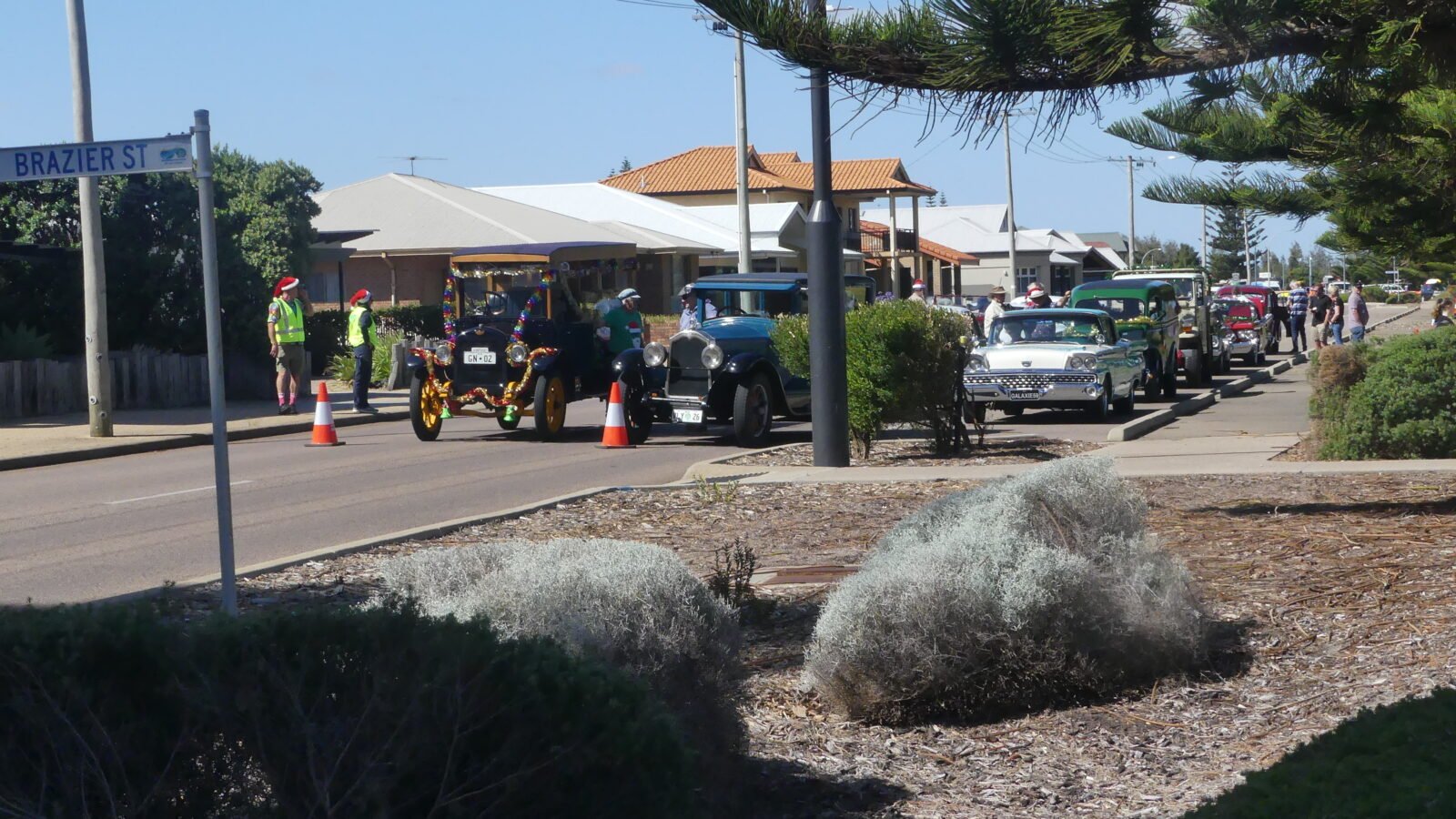 An unexpected “bonus” of our Sunday walk was to come across the local Christmas parade; as we walked to the jetty they were forming up for a 4pm start so we strolled back towards the turning point and stayed to watch.