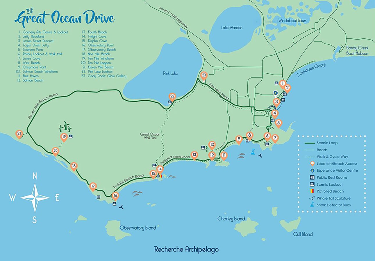 The drive rounds out the beaches with Nine Mile Lagoon, Ten Mile Lagoon, and Eleven Mile Beach