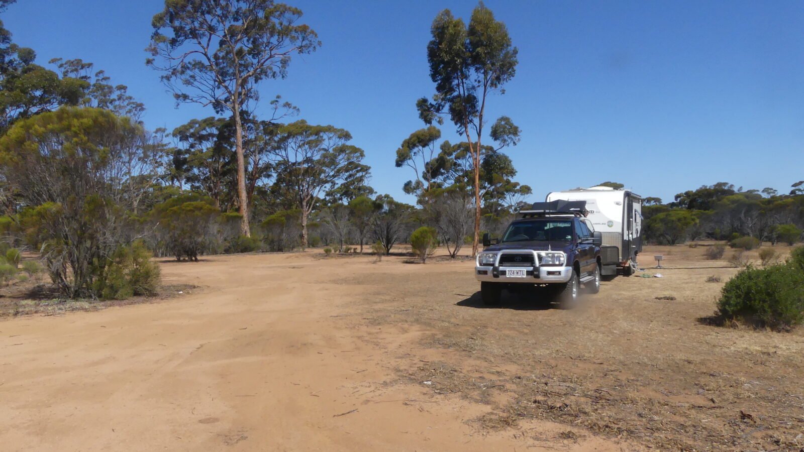 A further 65km North from Salmon Gums gets us to Bromus Dam, a large free camp area provided by the Shire of Dundas at another of the historic old dam sites that are scattered across the goldfields and outer wheatbelt regions. A rectangular dam this one is fed, as usual, from a large area of slightly elevated rocks.