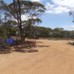 A further 65km North from Salmon Gums gets us to Bromus Dam, a large free camp area provided by the Shire of Dundas at another of the historic old dam sites that are scattered across the goldfields and outer wheatbelt regions. A rectangular dam this one is fed, as usual, from a large area of slightly elevated rocks.