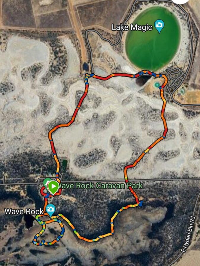 We waited until Monday, being forecast for mid 30s, instead of low 40s , to climb the rock and then do the loop walking trail around past Hippos Yawn and then around the salt lake past the Resort and Airport and back to the Caravan Park a total of 6km.