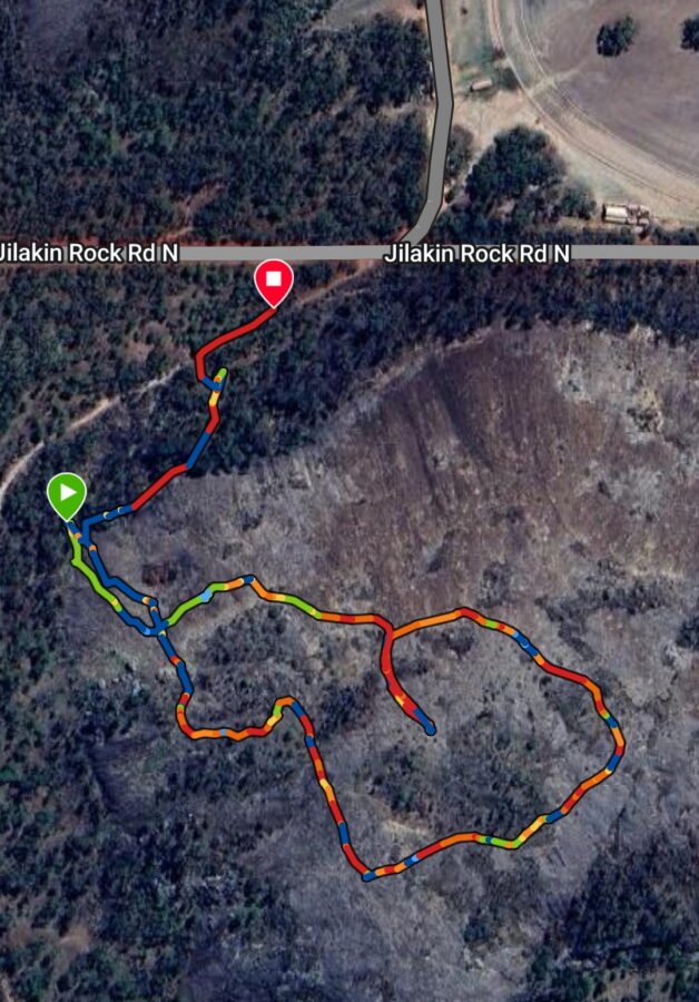 At the completion of the Tin Horse Highway is the access road to the Bush Racecourse at the foot of Jilakin Rock. A small parking area is provided at the start of a path to the rock which we climbed up and around anti clockwise following a previous AllTrails path which was reasonably accurate.