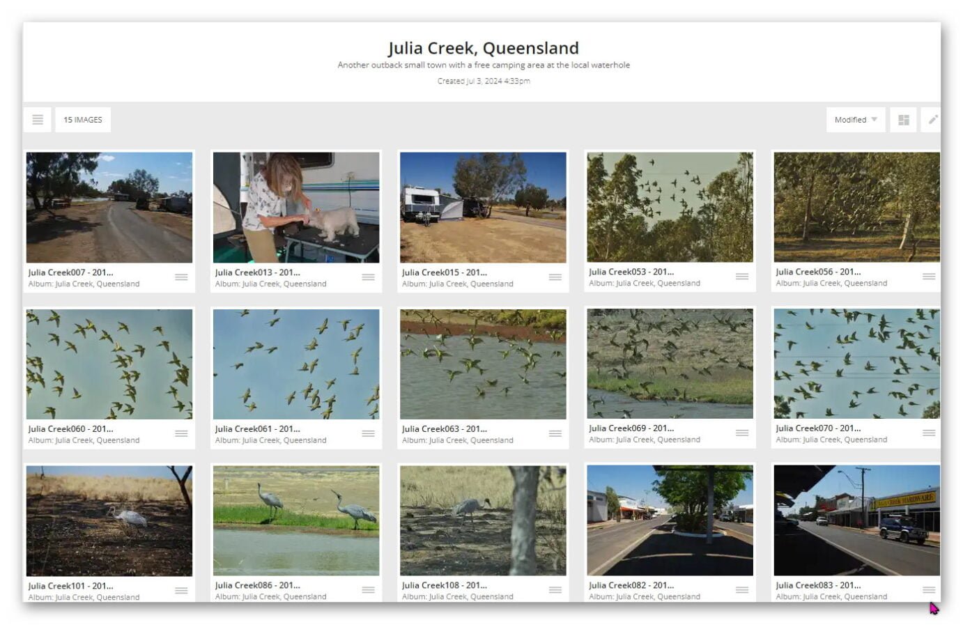Julia Creek Free RV Area: We were going to stop on the way here at a small campsite at Nelia (50km back) but it turned out that they don’t have power or water as our book shows so we came through to here. This is a great little free camp, right on a “contained” part of Julia Creek itself providing a permanent waterhole. There is town water here and you can camp up to 4 days (which we are); no toilets but public dump point and water in town when the tank needs emptying or filling. Catching up on washing while here. Our first day here on arrival Julia Creek made the ABC weather as the state’s hottest of the day at 39 degrees (Yes,, well,,).