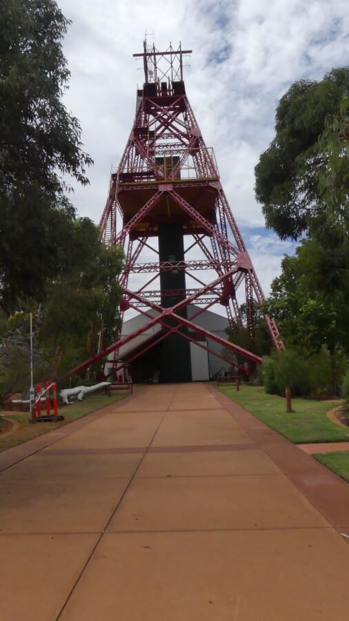 The Poppet Head which towers over the Museum entrance and building was donated to the Museum and relocated from its last working location when the mine was absorbed into the Super Pit.