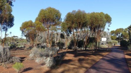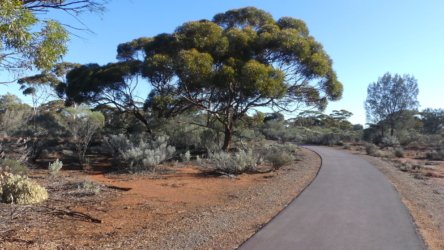 Kalgoorlie offers a few walking opportunities, one of them right from the RV Stop. The Kokoda Walk actually terminates just behind the RV Park at Centennial Park, It originates as part of a walking and cycling path that extends 4.1km through to South Boulder. We walked out and back just beyond the 3km of the Kokoda Trail. where the storyboards begin. The path follows a mostly natural stormwater course with very easy walking.