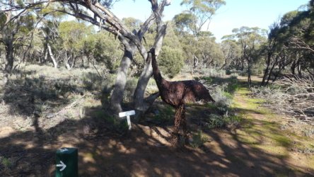 With signage right from the camping area, the Roora trail takes you through the remains of the Roora Reserve, originally the surrounds of the town water supply dams but now considerably reduced in size. The trail meanders through bushland with a lot of identifying signage of the plant and tree species ; it terminates at Whites Knob where you can look across the town area and other are statues of the explorer John Eyre and his aboriginal guide.