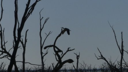 The lake full of water is a stunning sight and birdlife is everywhere; we found a spot along the frontage (which extends for about 4km) with some open space for solar charge and a direct view across the water to the sunset each night