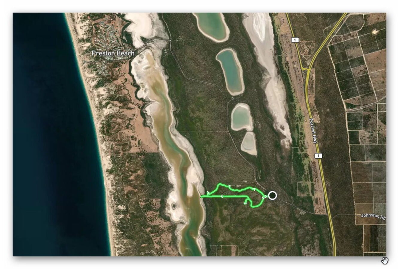 Preston Beach sits at the Northern end of the Lake and offers a small Roadhouse / Store where we bought a Fish and Chips Lunch after our walk and drove to the beach.