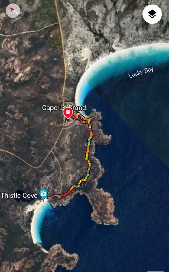 There si a continuous walking trail along the coastline of Cape Le Grand National Park and you can walk any section of it from various locations. From Lucky Bay you can go East to Thistle Cove or West to Rossiter Bay.