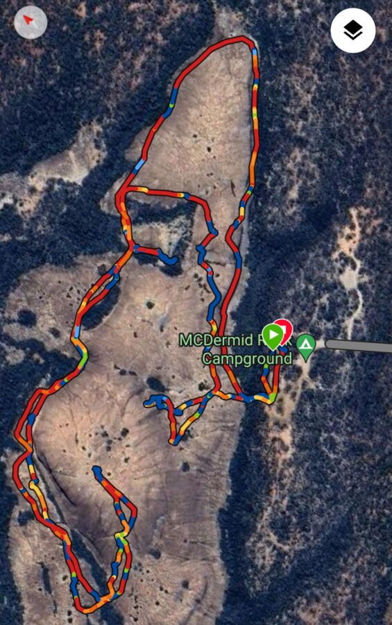 There is a plotted walking trail here that goes up and over the rock and around the main body, but the steepness of the climb to the first point was something we decided not to tackle, and it was far too steep to descend. So we settled for an out and back walk taking some of the locations in reverse order and including the summit from the other side and with our own variations including going around the base on the return to pass the wave-rock type cliffs just behind the campground.