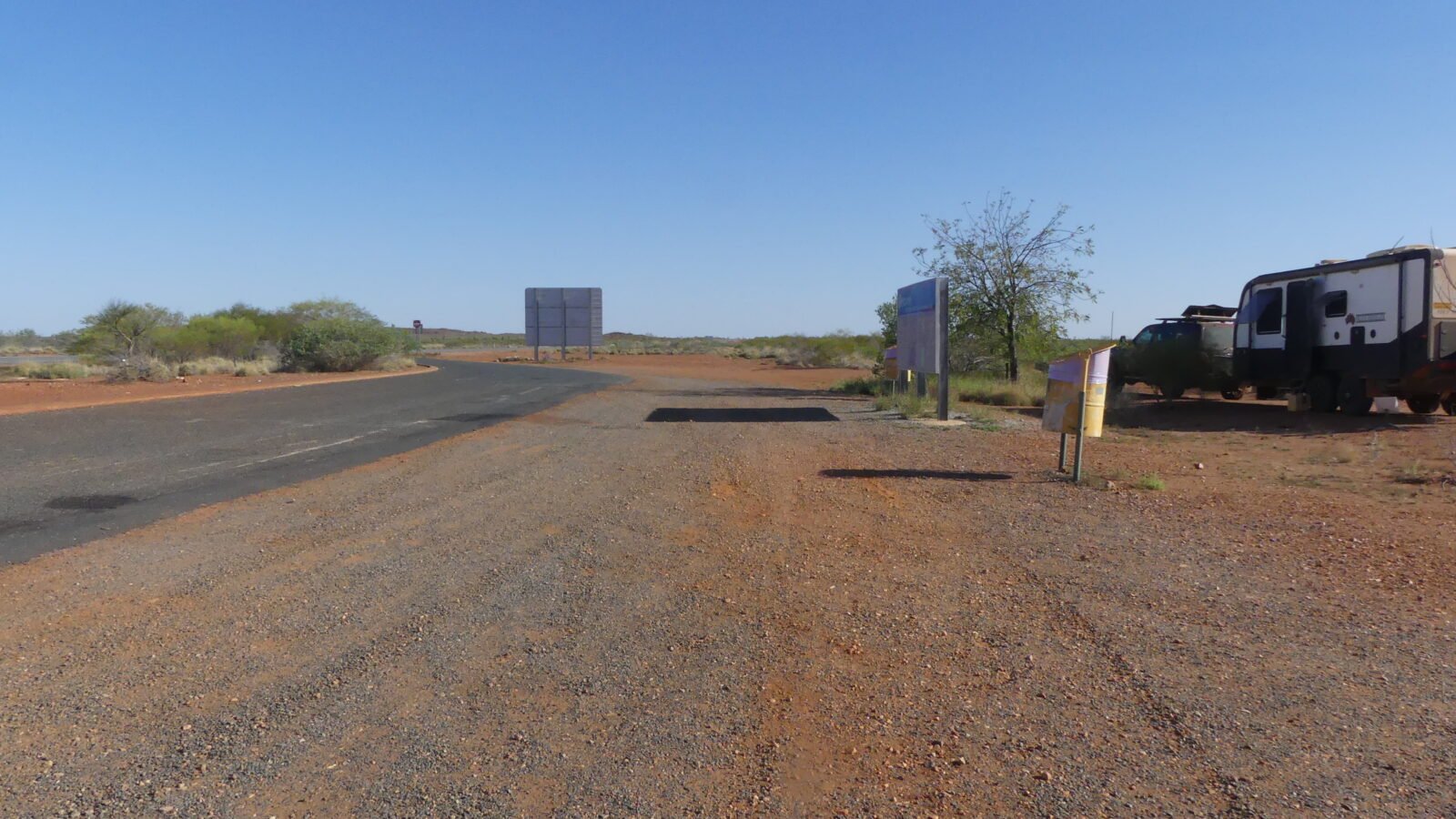 Continuing on to the North West Coastal Highway from Millstream, with our next “real” destination being Gladstone Bay, we stopped for two successive nights at the Rest Areas at the Onslow turn off (Cane RA) , pictured above and right; and opposite the Minilya River Roadhouse