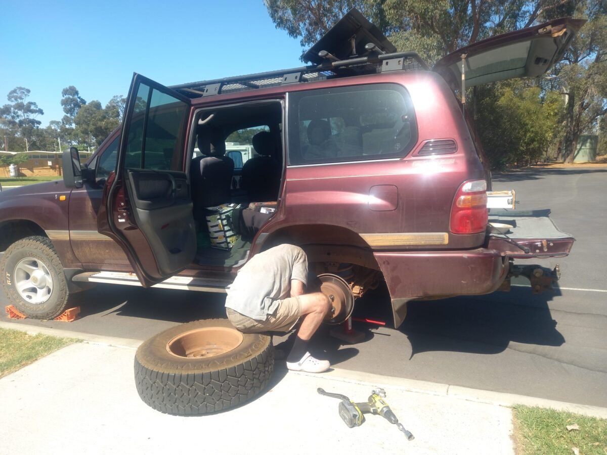 Other than that Keith had to to replace the rear brake pads in the Landcruiser (after 95,000km) and one disc rotor that was scored in the process of wearing out. Parts easily available at the local Repco store and couple of short sessions to fit them.