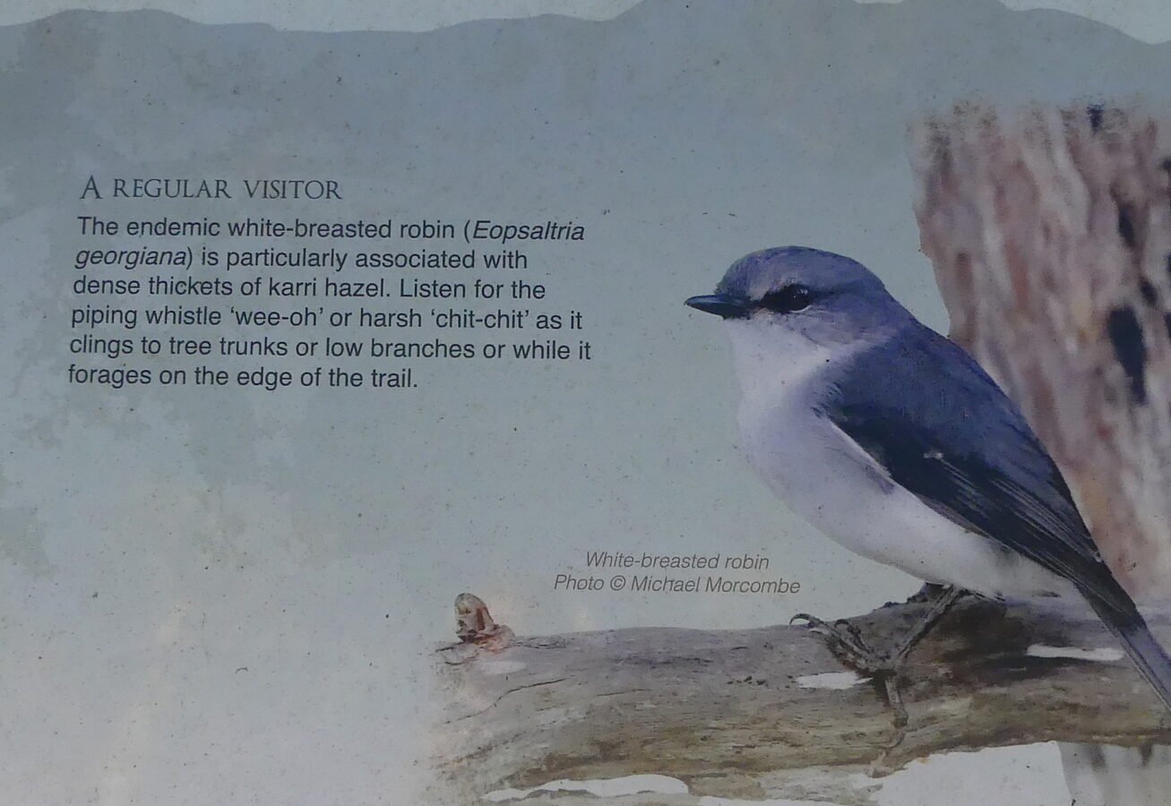 The walk has many information boards with reference to the local flora and fauna and the indigenous history; the White Breasted Robin seen here we did see on more than one occasion. This is an easy walk classed as grade 3.