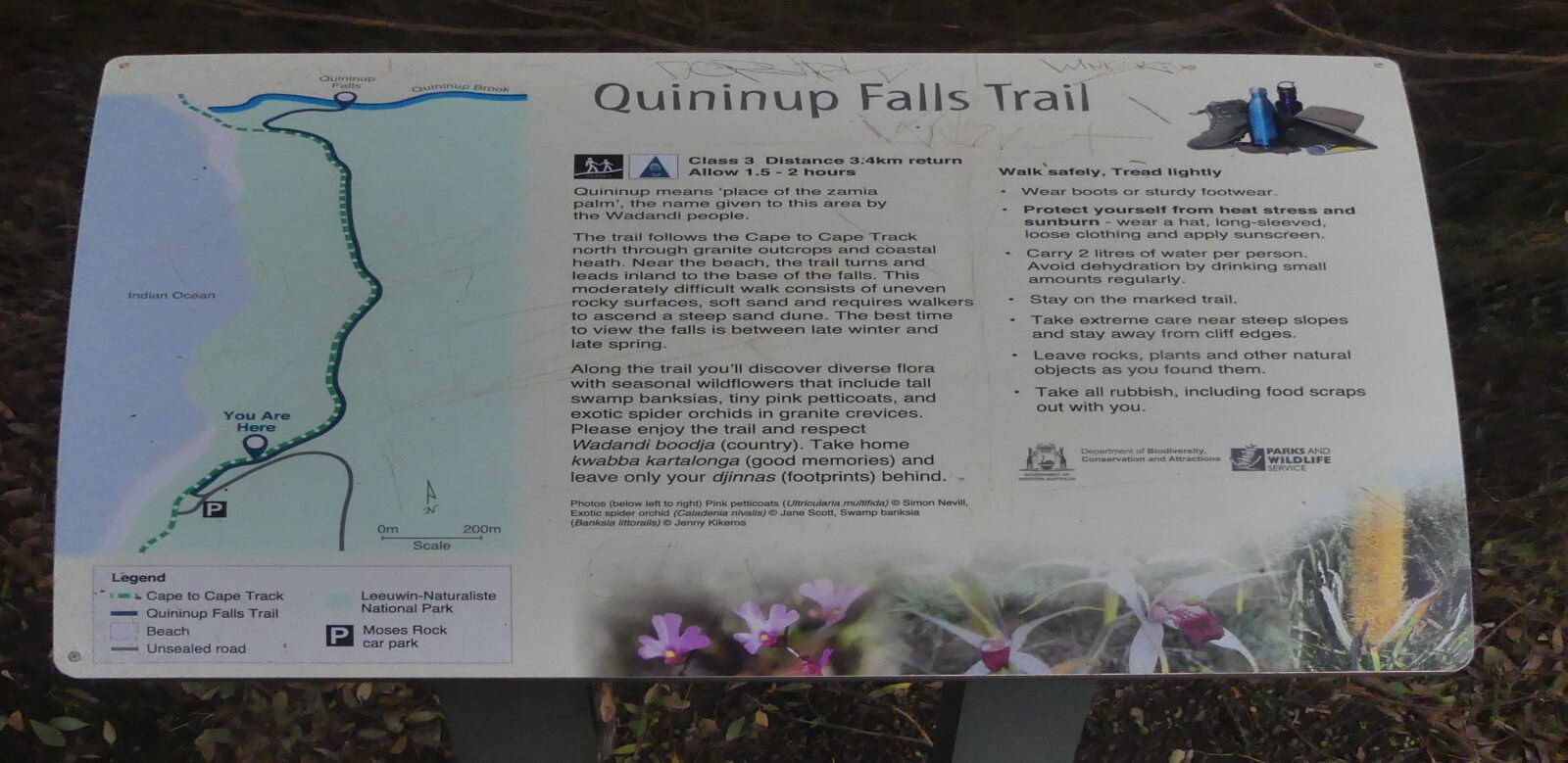 Leaving Yallingup we had to make a detour back to Margaret River for some mail that arrived after we left so we decided to take in this walking trail to Quinninup Falls which follows mostly the Cape to Cape Track from the Moses Rock Carpark, just 4km off Caves Road.