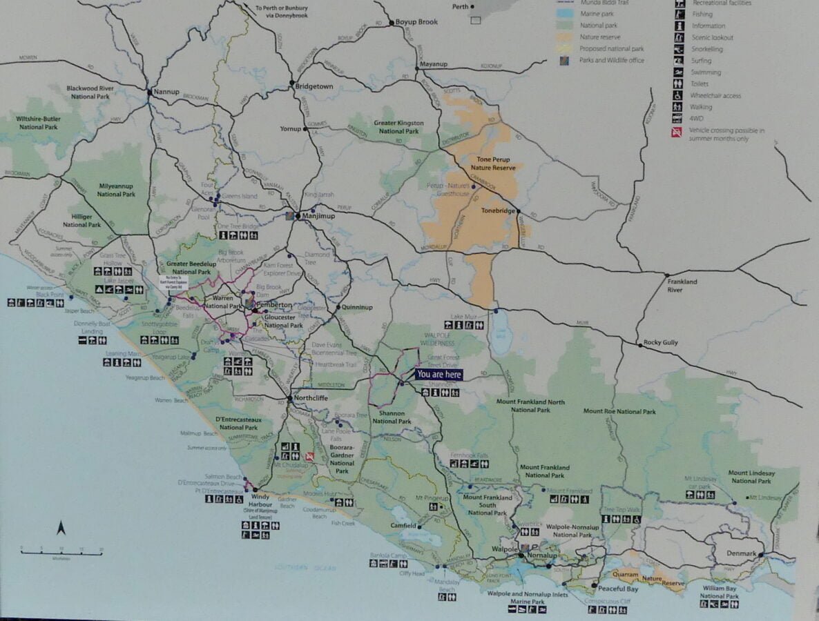 A short drive of 66km from Walpole is the Shannon National Park Campground; we had been watching the weather in order to decide whether or not to stop over here on the way Westwards and as the forecast was good for 3 days we made a booking and here we are for 3 nights and the only camper here!