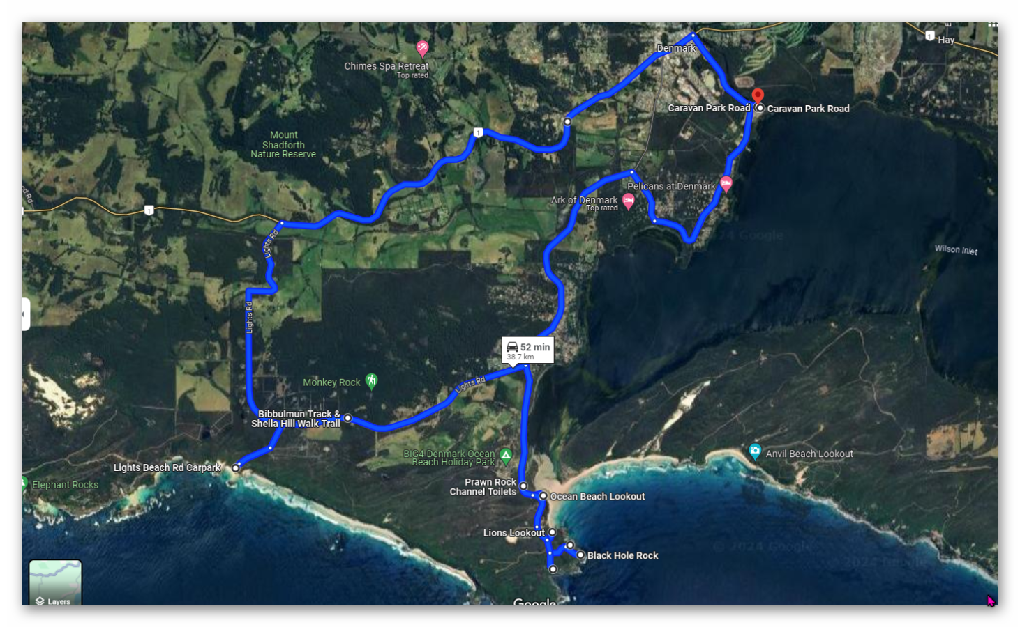 The coast to the West of Denmark and Wilson Inlet has multiple Lookouts and amazing views and the first part of these we did as a day drive and a couple of walks taking a light lunch with us and consumed at Lights Beach before our 7km walk. (Part 2 and 3)