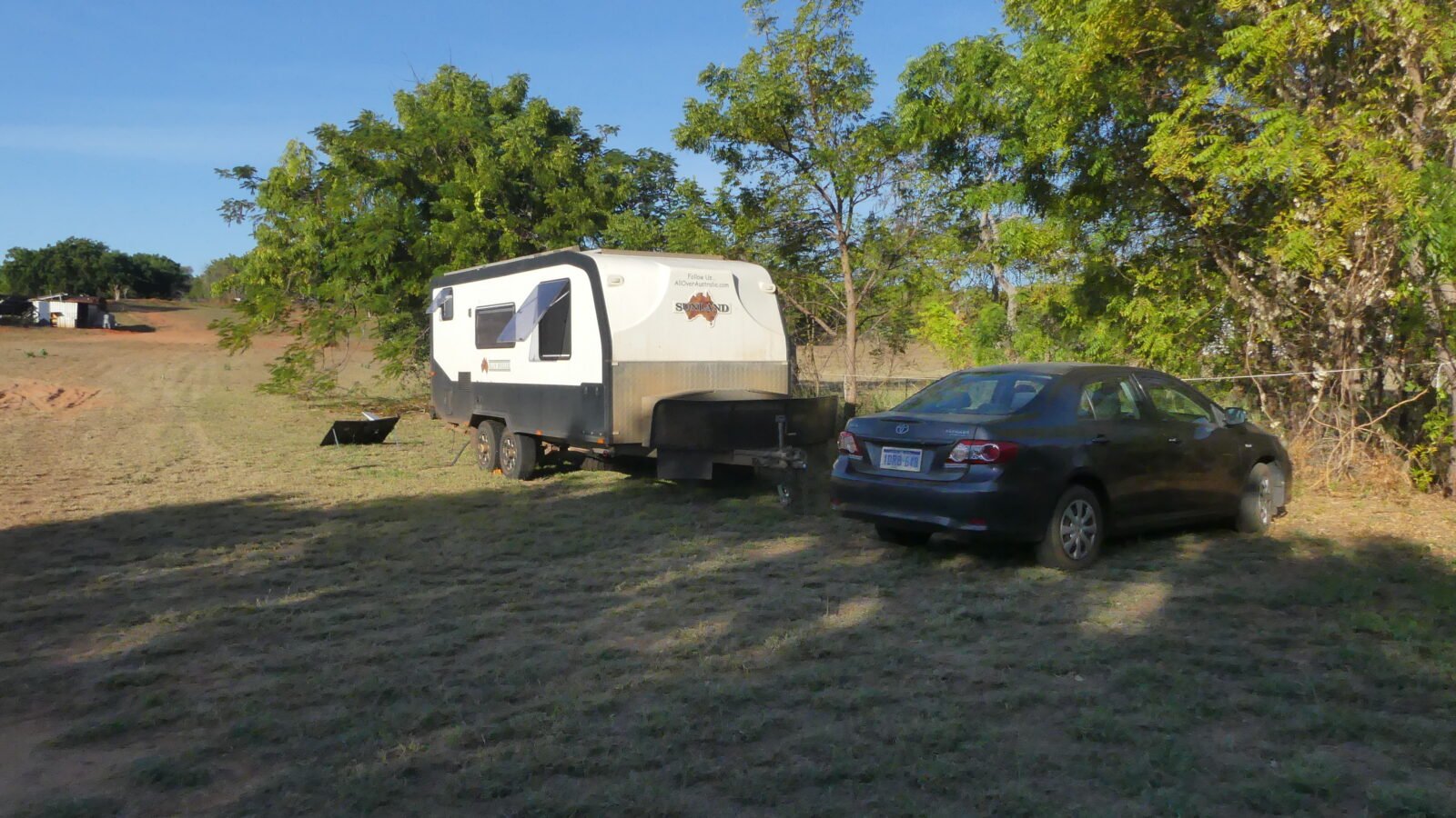 As we had to leave the Tarangau Caravan Park and not being able to extend our stay, we had to find an alternative. As it happens, Warren Minshull at the garage owns a Hipcamp property at Waterbank, North of Broome so we negotiated to stay there at a cash price of $50/night. The property is a 23km drive from Broome and the beachfront about 12km North of the Cable Beach Surf Club along the beach. He also rpovided us witha loan vehicle while ours was being fixed, first an old ute called Rusty (for obvious reasons!) and then this Toyota Corolla.