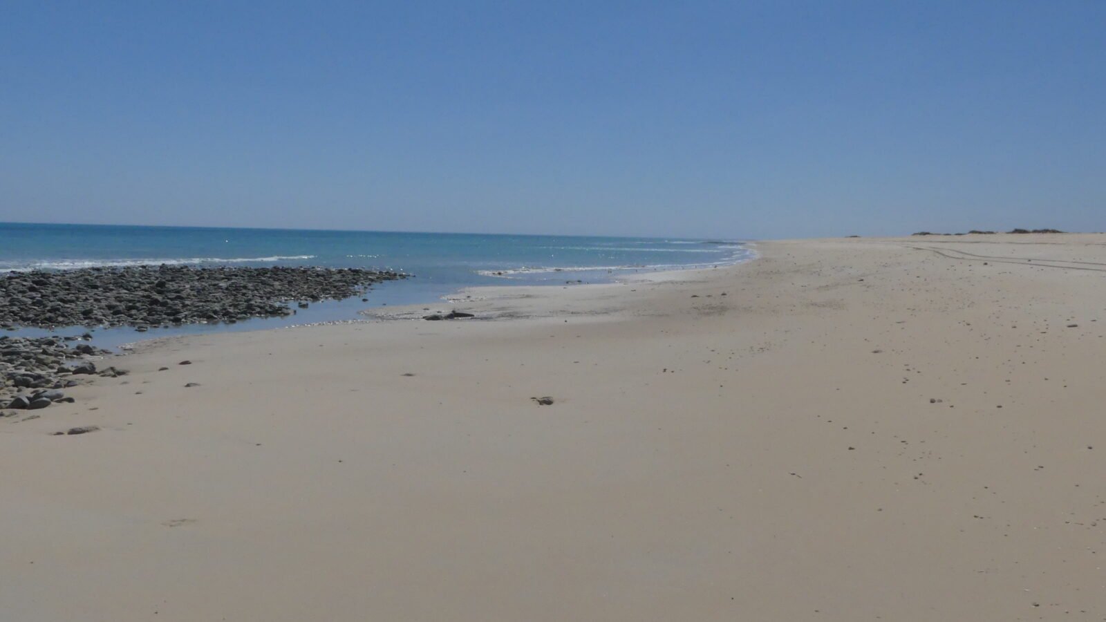 The beach can be driven or walked to over a distance of only 700m and extends 6km to the North (and drivable) to the Southern side of Willie Creek, and 3km Southwards to a lagoon which is easily crossed at low tide; Cable Beach Central is a further 9km but in clear view all the way to Gantheaume Point.