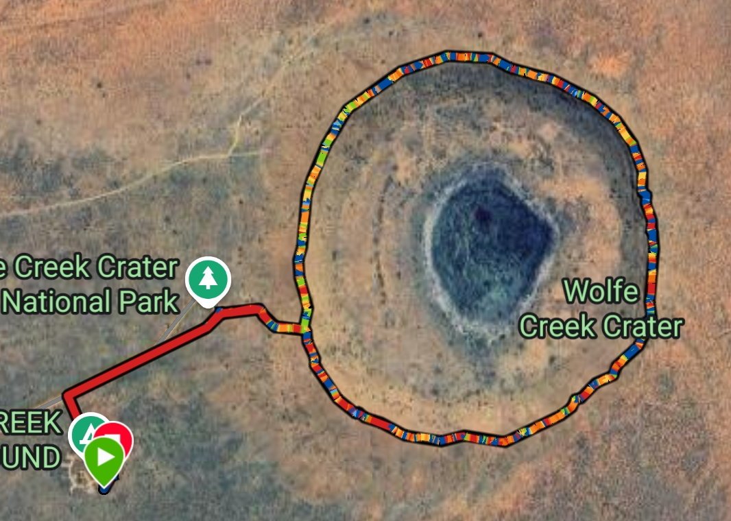 The second largest meteor crater in the world (Arizona being the home of #1) Wolfe Creek is a must see. It isn’t surprising that this wasn’t discovered until 1947, although it was known to local indigenous people, as it presents only a raised rim of rock and vegetation above the surrounding flat landscape, looking like any other low hill seen here from the car park at the base; only viewing from above reveals the actual crater.